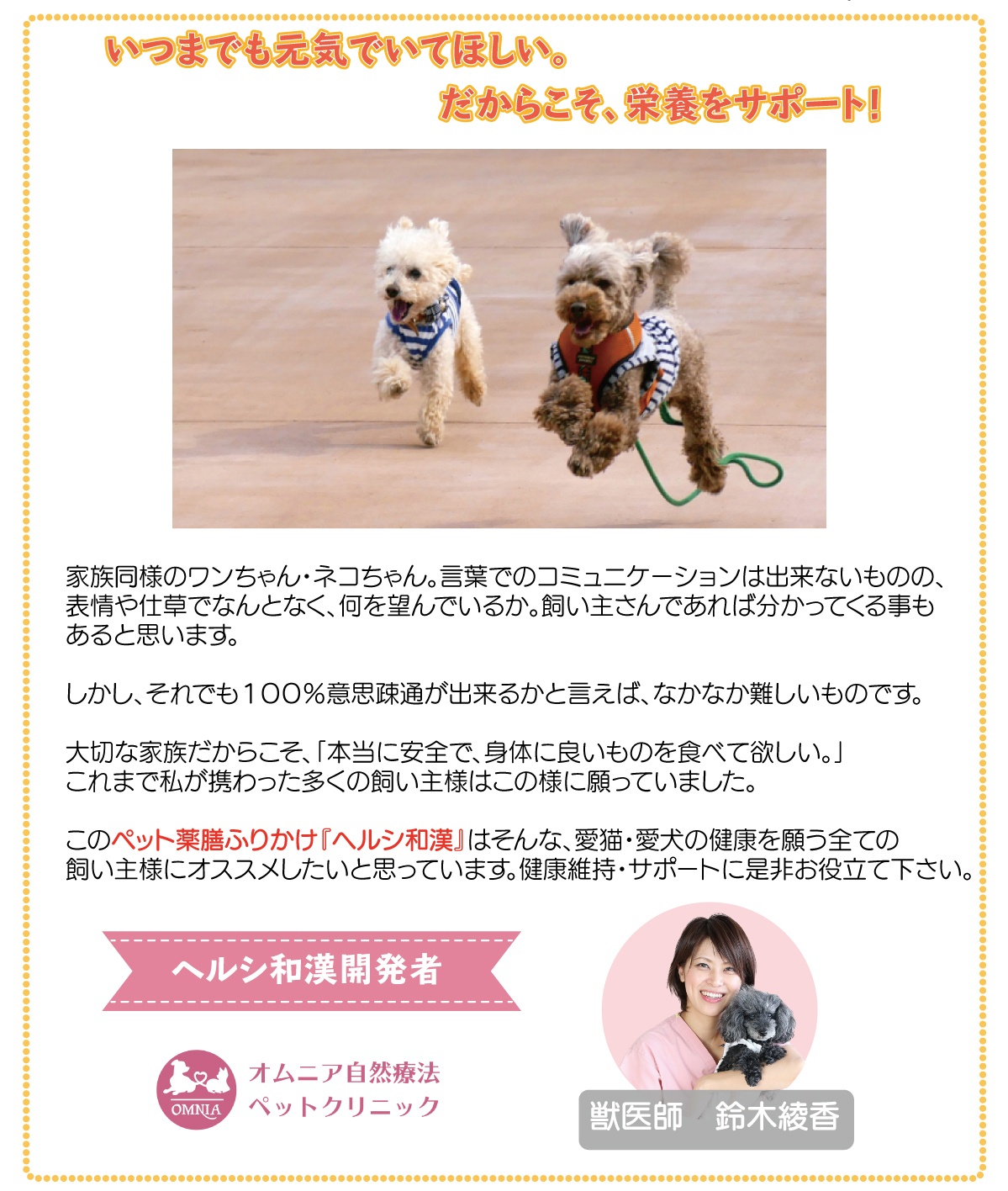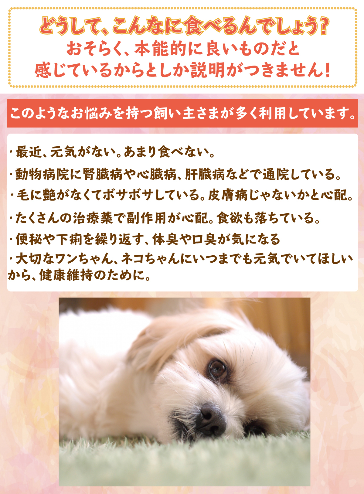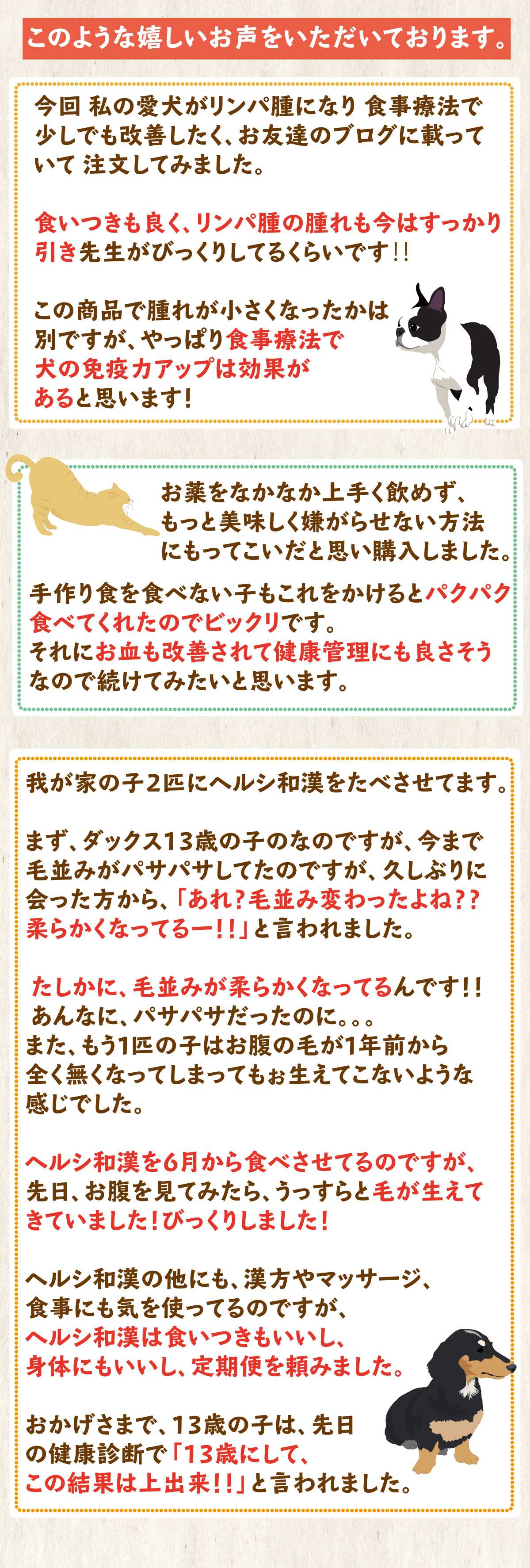 ■大切なワンちゃんや、ネコちゃんにいつまでも元気でいてほしいから、健康維持のために。